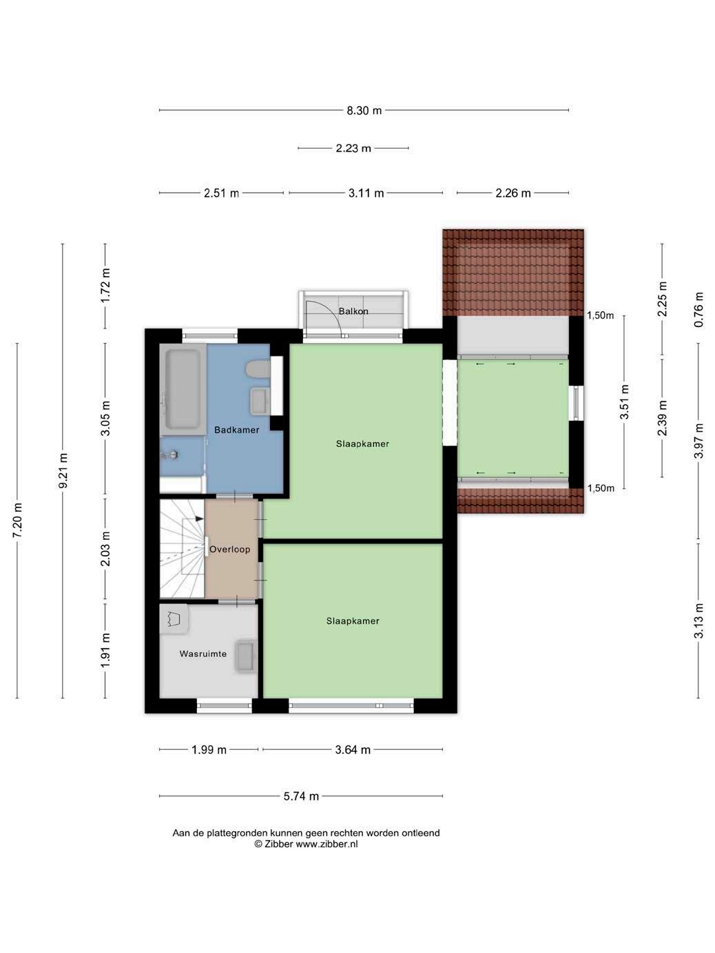 De slaapkamer aan de achterzijde is door de zij-uitbouw extra ruim en beschikt daarnaast over toegang tot een balkon. Aan de voorzijde bevindt zich een aparte wasruimte, die desgewenst kan worden aangepast naar bijvoorbeeld een werkkamer. Tevens is hier nog een goede slaapkamer aan de voorzijde aanwezig.