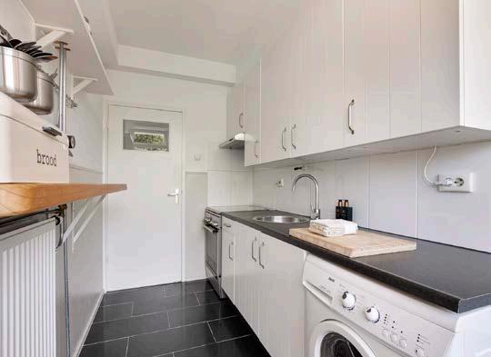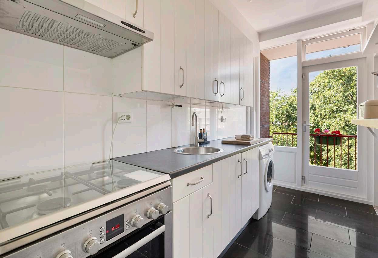 Vanuit de keuken heb je direct toegang tot het balkon, waar je ‘s ochtends kunt genieten van een kopje koffie terwijl je uitkijkt over de rustige en groene omgeving