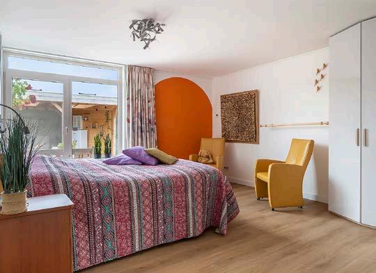 Het ligt in een rustige wijk waar bijna uitsluitend bestemmingsverkeer rijdt. Van vliegtuiggeluidsoverlast is hier geen sprake. Hier komen nauwelijks vliegtuigen over. Ook buiten is het goed toeven. De tuin is volop voorzien van uitbundig bloeiende bloemen en groenblijvende heesters zodat ook in de winter genoten kan worden van de tuin. Veel vogels en vlinders weten dit plekje te vinden…..