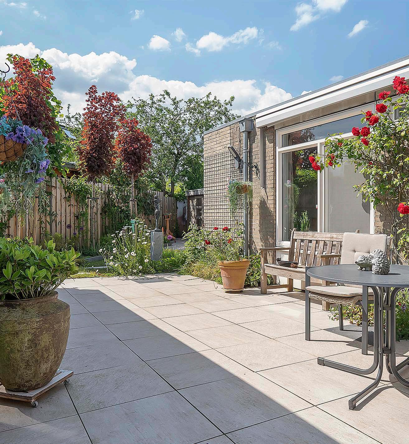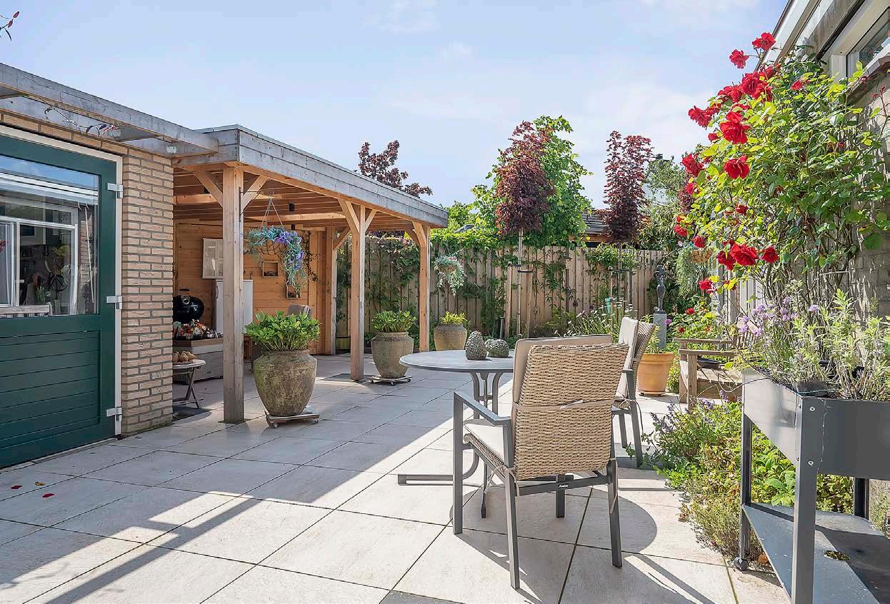 De comfortabele veranda zorgt er voor dat ook bij wat minder weer toch van de tuin genoten kan worden. Heerlijk genieten van flora en fauna met een boekje, dat ook ‘s avonds gelezen kan worden omdat er verlichting aanwezig is. Kortom, een prachtplek….zowel binnen als buiten.