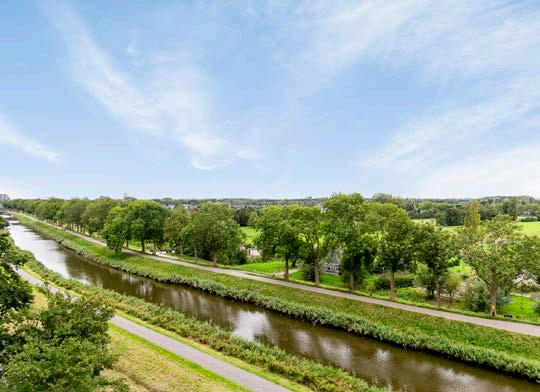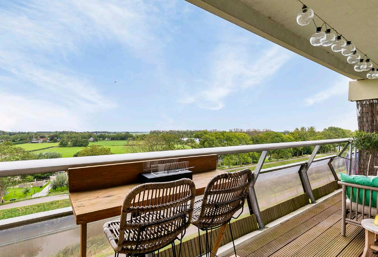 In de zomer varen er regelmatig bootjes langs, en de dijk waar je op uitkijkt brengt altijd beweging in het zicht, met fietsers, hardlopers en wandelaars die voorbij trekken. Het is een mooi en dynamisch uitzicht dat elk seizoen iets anders biedt.