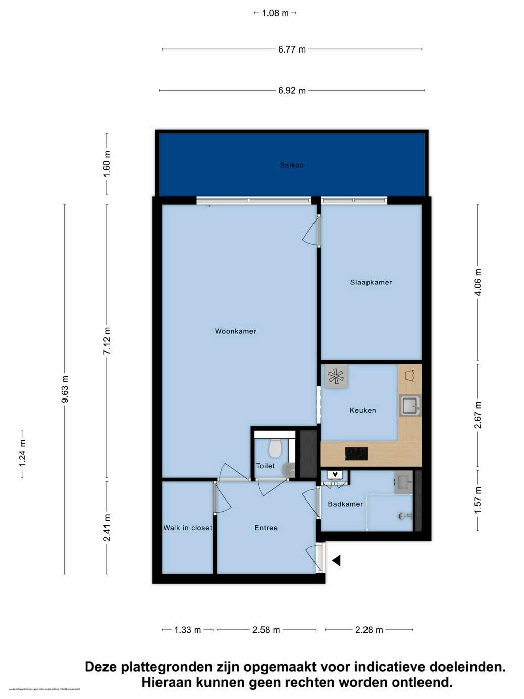Middels de gemeenschappelijke entree stappen we dit goed onderhouden appartementen complex binnen. In de entree tref je de brievenbussen en de trap of lift naar boven. Eenmaal op de zevende verdieping stap je binnen in de hal die je leidt naar de diverse vertrekken van het appartement. Het eerste dat je opvalt is de ruimte. Met een woonoppervlakte van 62 m² voelt het appartement licht, luchtig ruimtelijk en uitnodigend aan.