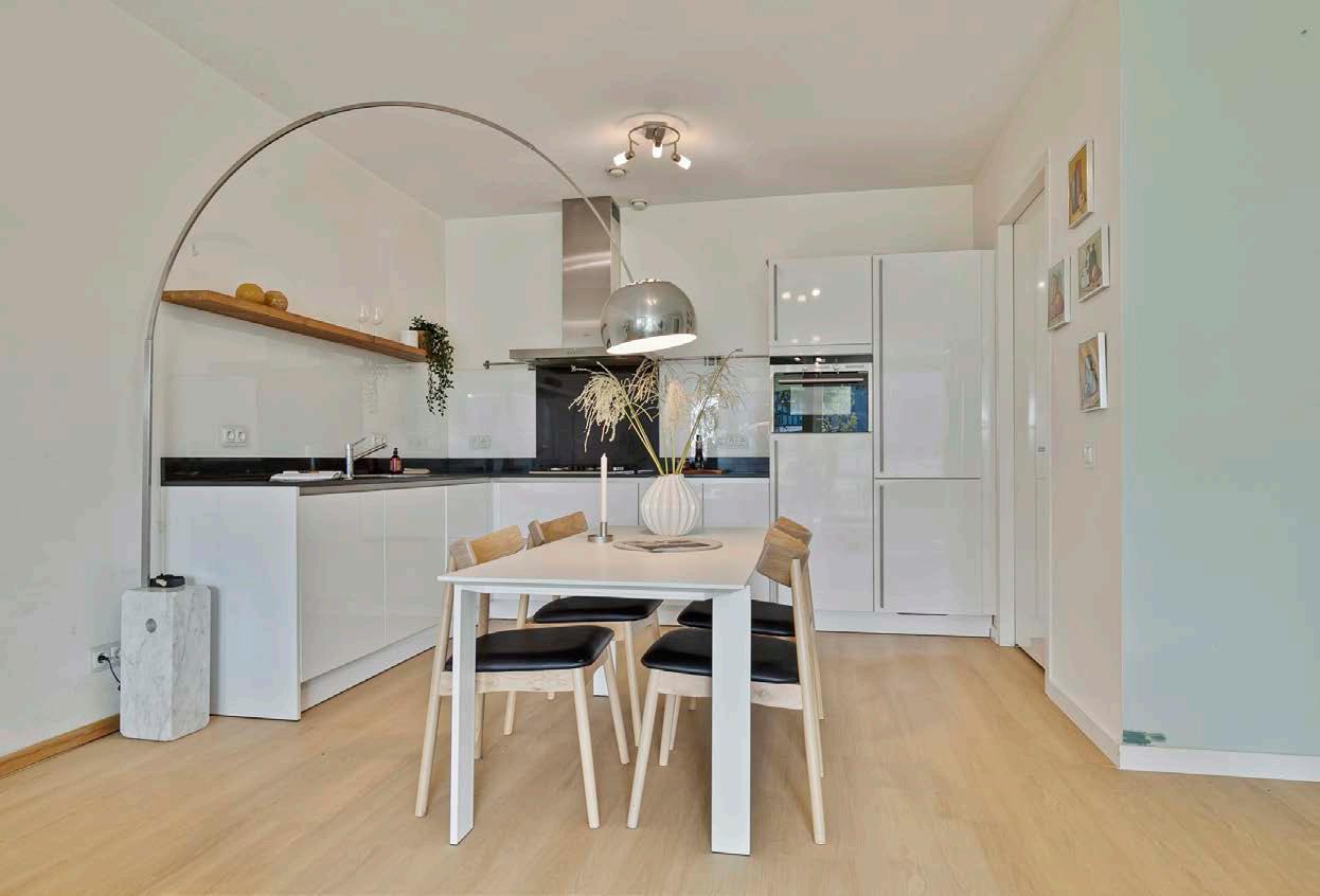 Stap deze wereld van rust en luxe binnen en voel hoe de zorgen van de stadse hectiek van je afglijden. De betoverende woonkamer verwelkomt je met een vloed aan natuurlijk licht dat speelt op de fraaie pvc-vloer, waardoor elke dag opgewekt begint.