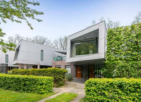 Een dozijn geschakelde uiterst originele woningen met futuristische uitstraling. Slim gebouwd , zodat je niet bij de buren binnen kunt kijken, in 2001, met uitstekende kwaliteit bouwmaterialen, modern en energievriendelijk.