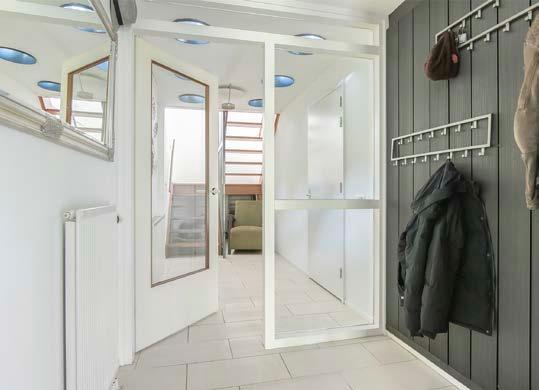 Modern, maar niet koud. Er heerst een zenachtige Japans georienteerde sfeer. Een ideaal huis voor een gezin met kinderen, alles is in de buurt; de beste scholen, bos en heide, station, diverse winkels en het uitgaansleven van Hilversum. Een heerlijk ruim terras boven, een kleine onderhoudsvriendelijke tuin beneden en veel groen voor de deur.