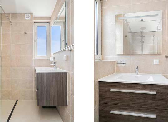 De badkamer is van 2017. Trendy zandkleurige tegels, een lekker royale inloopdouche met spatscherm, wastafel met ladenmeubel en verlichte spiegel en een verchroomde handdoekenradiator zetten hier de toon. Plus natuurlijk een tweede toilet. Onmisbaar met jonge kinderen en volwassenen zijn dit stukje comfort ook héél snel gewend. De was en stook hebben hun eigen plekje op de overloop.
