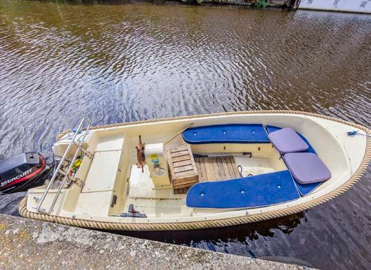 De woonark heeft een strategische positie direct aan het vaarwater, waarmee rust en recreatie hand in hand gaan.