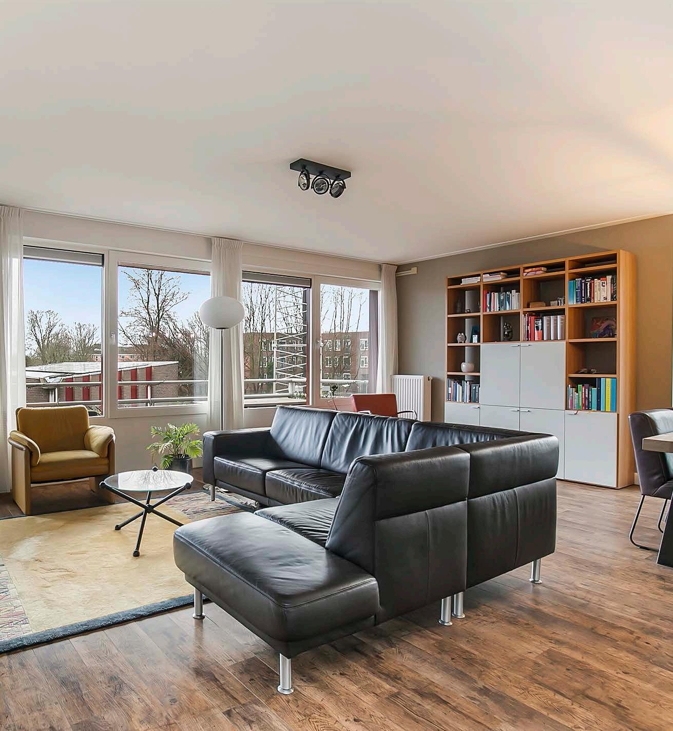 Wat ik het meest zal missen, is de ruime woonkamer met open keuken, waar ik vaak met vrienden rond de grote eettafel zit. De indeling is perfect: eerst de woonkamer en keuken, dan twee ruime slaapkamers, een handig gastentoilet en een grote, complete badkamer. Het balkon op het zuiden is een favoriete plek, met zon in het voorjaar en najaar en voldoende schaduw in de zomer.