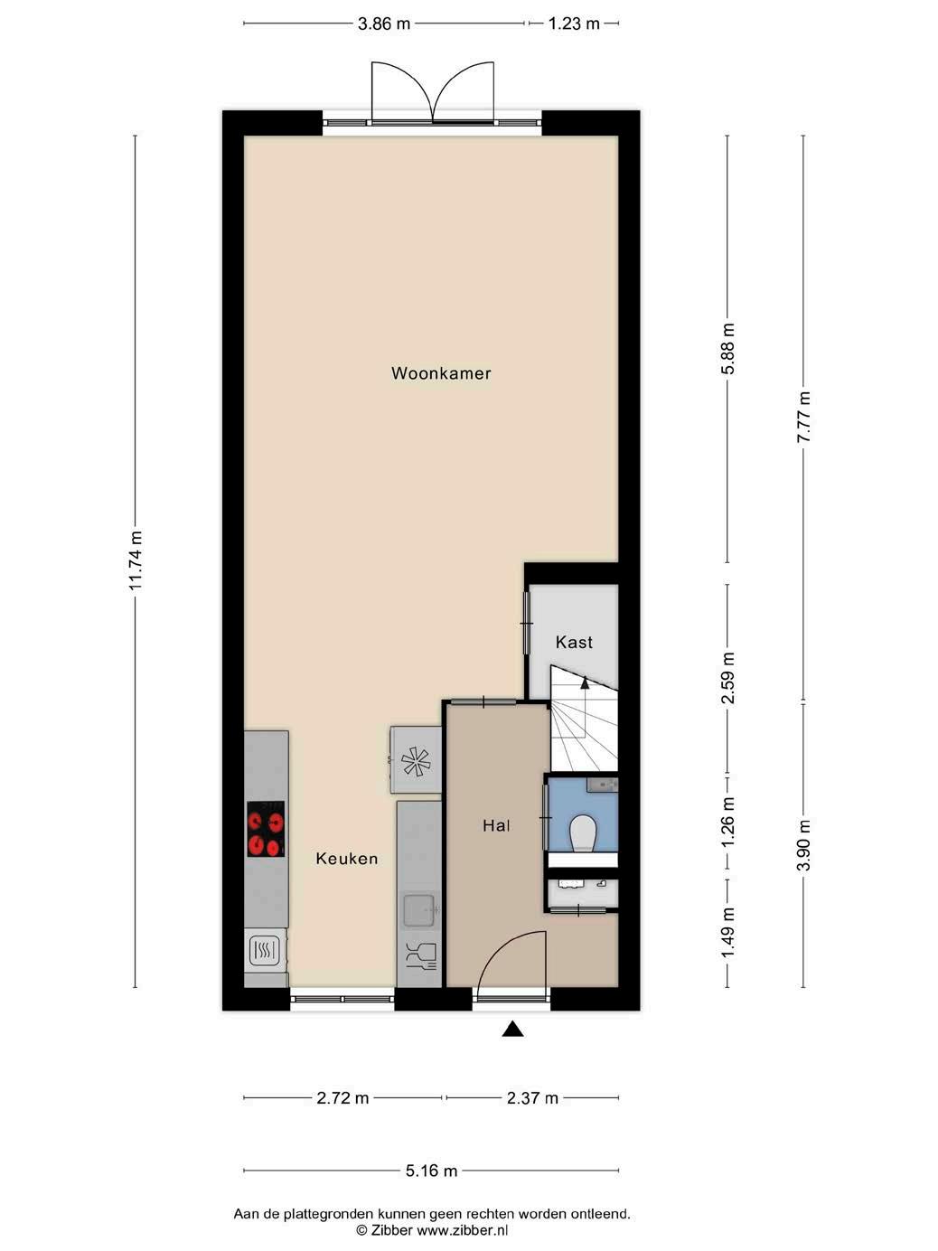 Je stapt de woning binnen via de hal met de meterkast en toegang tot het toilet met een fonteintje, de trapopgang naar boven en de woonkamer. De gehele woning is verzorgd afgewerkt.