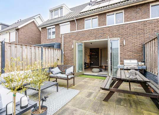 De tuin is verzorgd aangelegd met bestrating en op het noordoosten gelegen. Plaats hier een loungeset, tuintafel en barbecue. Jij bent klaar voor het voorjaar! Achterin de tuin staat een vrijstaande houten berging met elektra en er is een achterom.