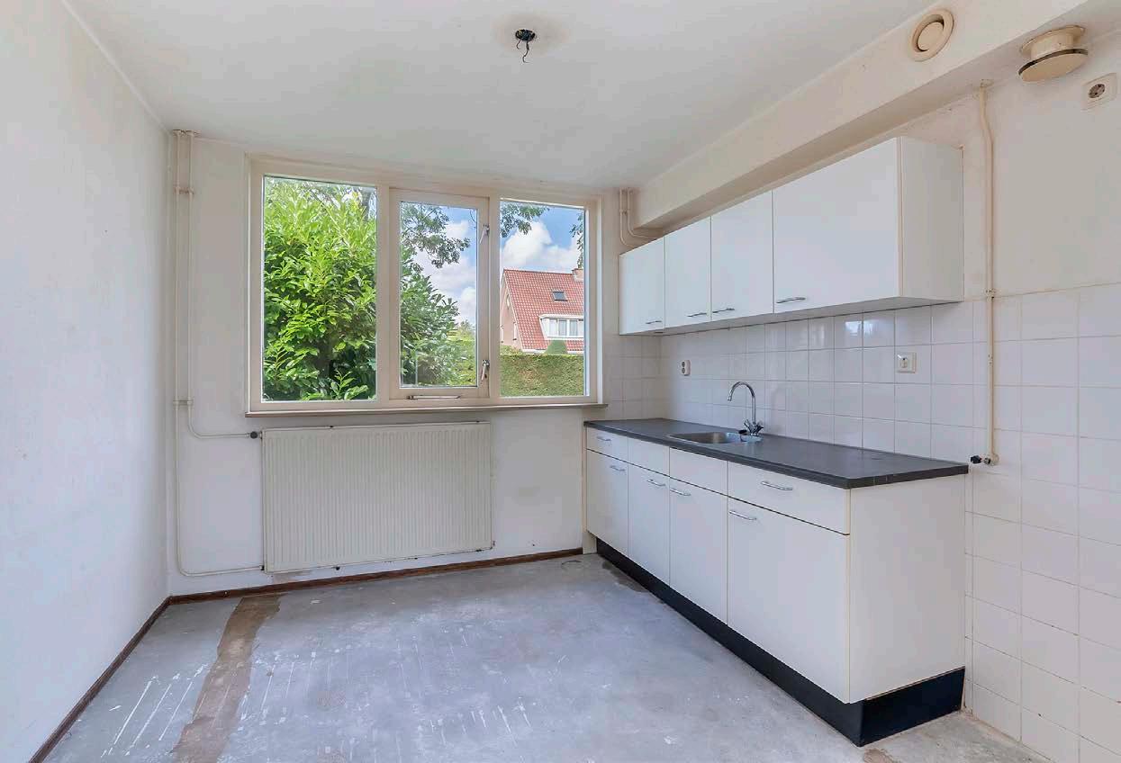 De open keuken bevindt zich aan de straatzijde en biedt gezellig uitzicht over de woonomgeving. De huidige keuken is eenvoudig, dus we kunnen ons voorstellen dat je kiest voor het (laten) plaatsen van een nieuwe keuken in een kleur, opstelling en met de apparatuur die jij wenst.