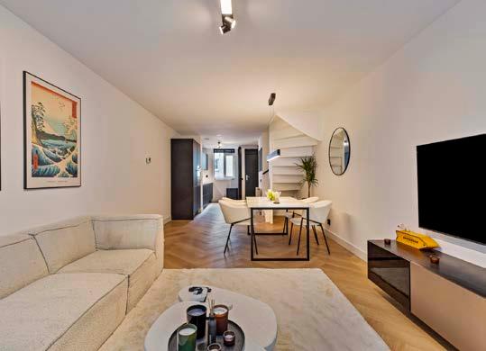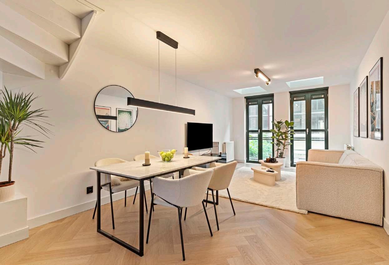 De woonkamer is het centrale hart van het appartement, ideaal om te relaxen na een drukke dag in de stad. De open keuken is uitgerust met moderne apparatuur en biedt genoeg ruimte voor culinaire avonturen. Met twee ruime slaapkamers op de bovenliggende verdieping biedt dit appartement voldoende ruimte voor een comfortabel leven. De master bedroom biedt voldoende kastruimte, terwijl de tweede slaapkamer perfect is voor gasten of als thuiskantoor.