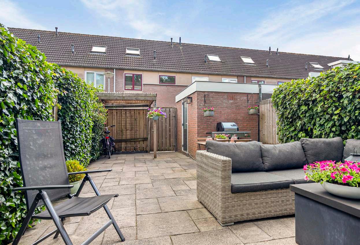 Deze zonovergoten tuin biedt de perfecte plek voor kinderen om te spelen, voor een zomerse barbecue met vrienden of voor momenten van rust met een goed boek.