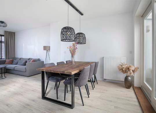 De open keuken is geplaatst in een rechte wandopstelling en voorzien van alle denkbare apparatuur. Er is gekozen voor een lichte kleurstelling zodat het perfect bij het geheel past. En kies jij voor een vier-/zes of acht persoons tafel? Aan ruimte geen gebrek!