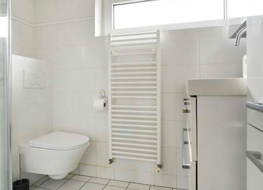 Vervolgens komen we in de badkamer. Het geheel is van grond tot plafond betegeld in een lichte kleur en oogt daarmee verzorgd. De indeling bestaat uit een douche, wastafelmeubel, toilet en een design radiator. Spoel de dag van je af!