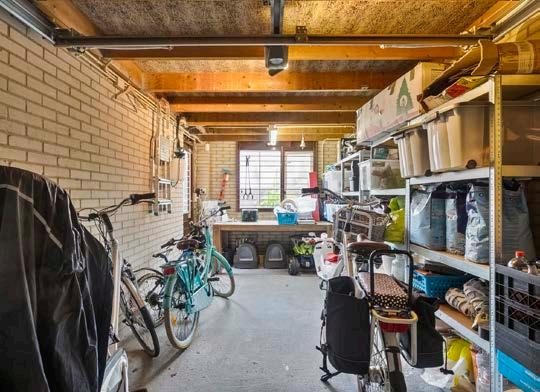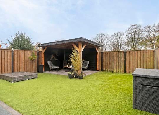De praktische garage biedt niet alleen ruimte voor je auto, maar ook voor opslag en heeft een handige doorgang naar de woning. De zonnige achtertuin, met ligging op het zuidoosten, is een perfecte plek om te genieten van de buitenlucht. De combinatie van bestrating en kunstgras zorgt voor minimaal onderhoud, en de overkapping achterin de tuin biedt een heerlijke plek om te ontspannen. Achter de tuin vind je een groen-/waterstrook.