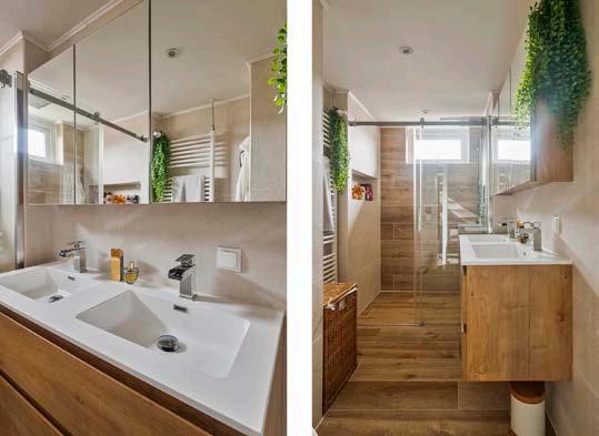 Op de eerste verdieping vind je drie ruime slaapkamers, elk met voldoende ruimte om je persoonlijk in te richten. De moderne badkamer, met zijn inloopdouche en dubbele wastafel, biedt een plek om heerlijk te ontspannen na een drukke dag. Op de tweede verdieping bevindt zich de vierde slaapkamer, ruim en voorzien van een dakkapel, ideaal als ouderslaapkamer of als luxe logeerkamer. Op de overloop bevindt zich een kast met de witgoed opstelling.
