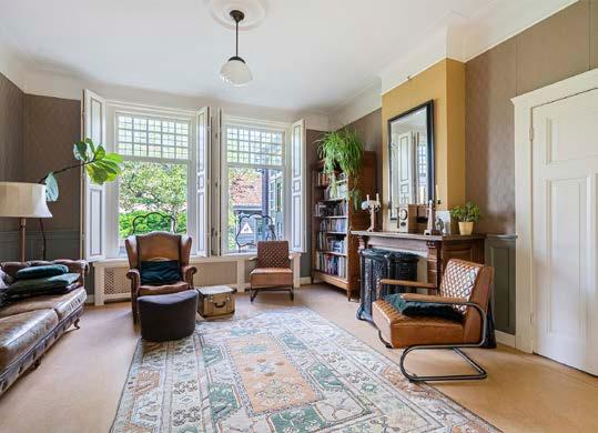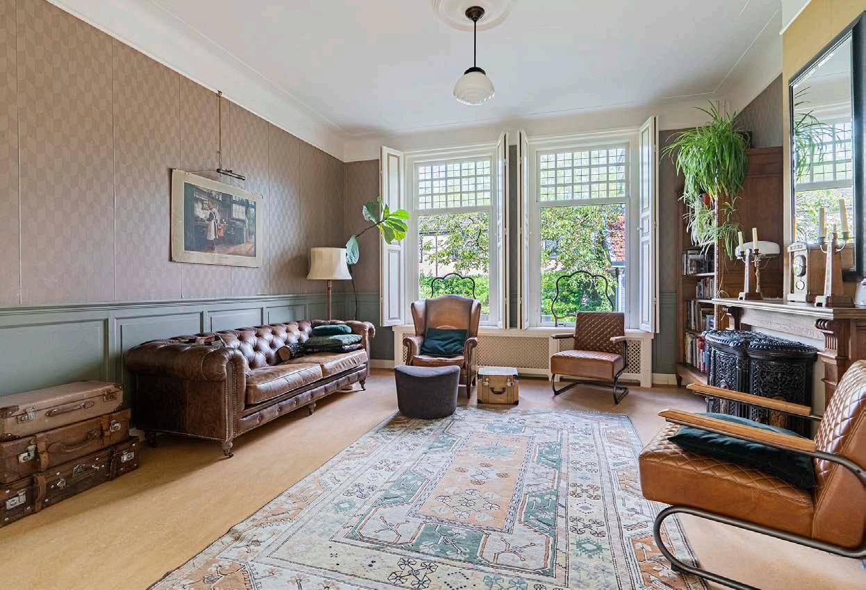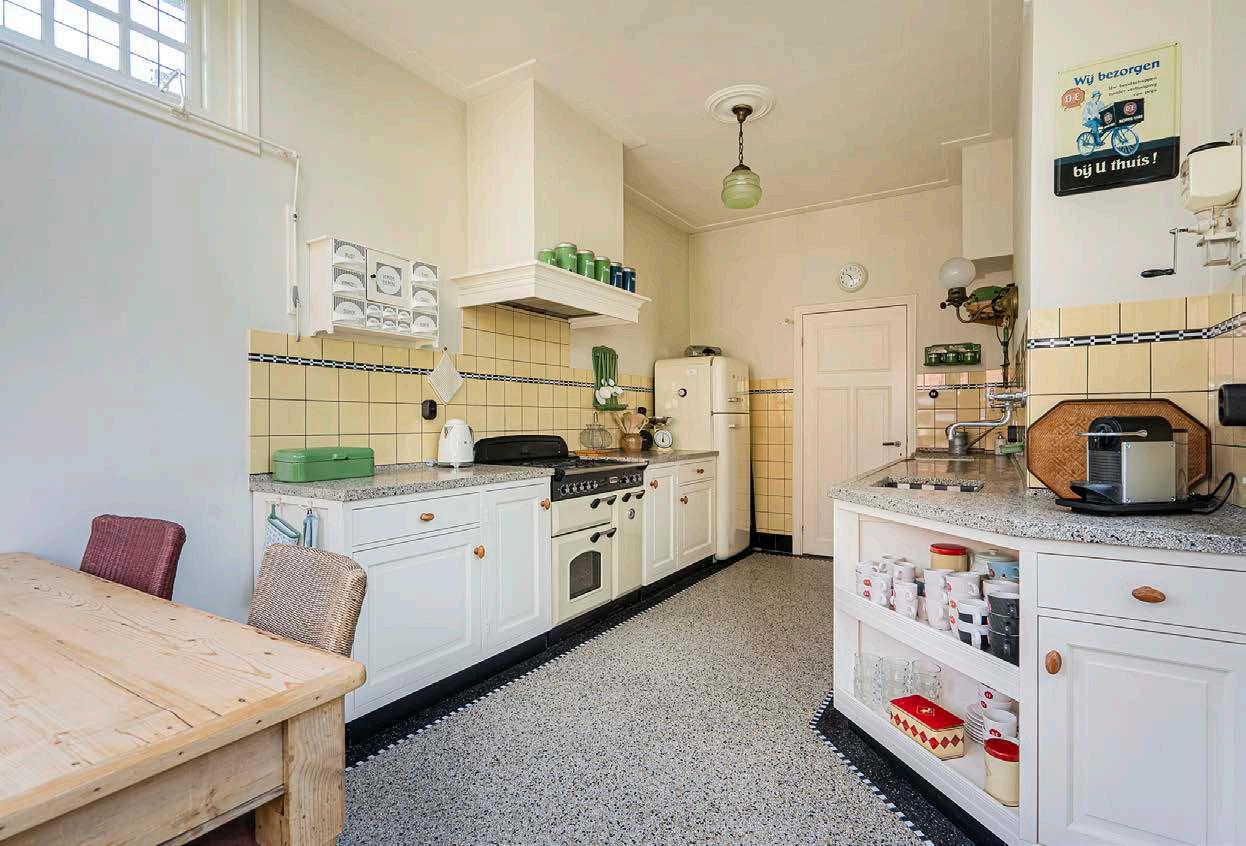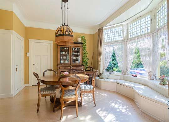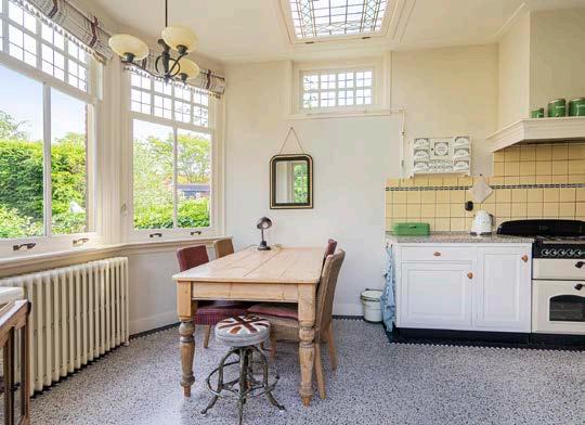 Dit huis ademt historie en charme in elke hoek. Je vindt hier originele details zoals sierlijke kroonlijsten, hoge plafonds en prachtige gesigneerde glas-inlood ramen die een unieke sfeer creëren. Deze elementen geven het huis een onderscheidende uitstraling en een warme, uitnodigende ambiance. Elk detail vertelt een verhaal, wat bijdraagt aan de unieke identiteit van de woning.