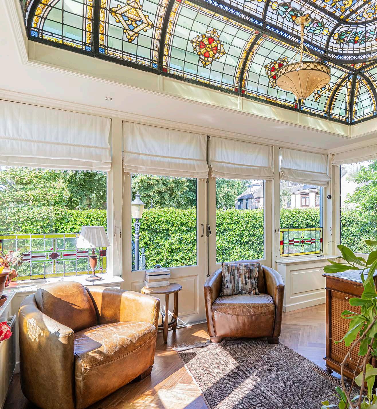 De verborgen parel van deze woning is de honderd jaar oude door galerie Prinsehof gesigneerde glasin-lood koepel met prachtige voorstellingen van gebrandschilderde fruit en druivenranken. Deze unieke feature herinnert aan de oude fruitkwekerij en druivenkassen die hier ooit stonden. De koepel zorgt voor een betoverende lichtinval en een sfeer die je nergens anders zult vinden. Het is een bijzonder element dat deze woning echt speciaal maakt.