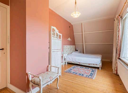 Op de eerste verdieping vind je drie ruime slaapkamers, elk met unieke charme. De master bedroom heeft prachtig uitzicht op de tuin. De badkamer, bereikbaar vanaf de overloop, heeft een inloopdouche en een authentieke wastafel – perfect voor gezinnen.