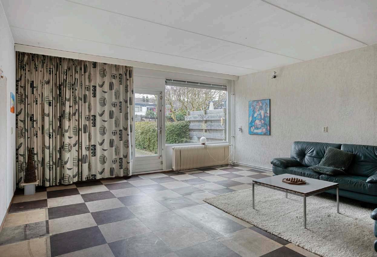Aan de achterzijde van de woning bevindt zich de ruime en lichte woonkamer met directe toegang tot de op het zuidoosten gesitueerde tuin. Tussen de woonkamer en woonkeuken bevindt zich een tussenhal waar zich het separate toilet en de cvopstelling bevinden.