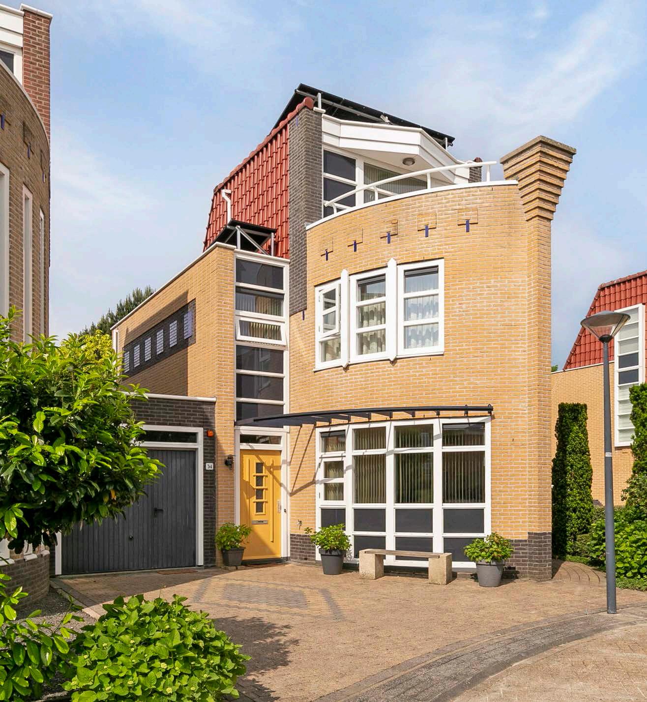 Vrij uitzicht aan de voorkant van de woning ( je kijkt de straat in, veel bomen) en de tuin is beschut! De woning lijkt op een schip!! Vanaf Het zonneterras op de bovenverdieping heb je een geweldig uitzicht en voel je je een kapitein op een schip Ik heb hier met veel plezier gewoond!! Ik ben de oorspronkelijke / eerste bewoner !!