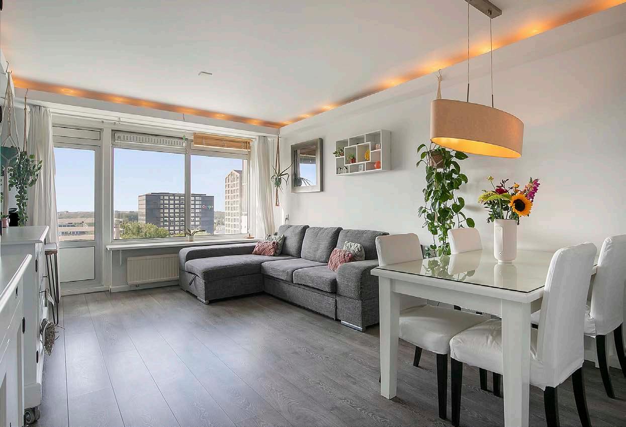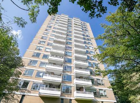 Dit appartement, gelegen op de vijftiende verdieping, biedt een vrij uitzicht op het westen en ligt direct aan het Rembrandtpark. Daarnaast beschikt het appartement over een eigen parkeerplaats in de onderliggende parkeergarage.