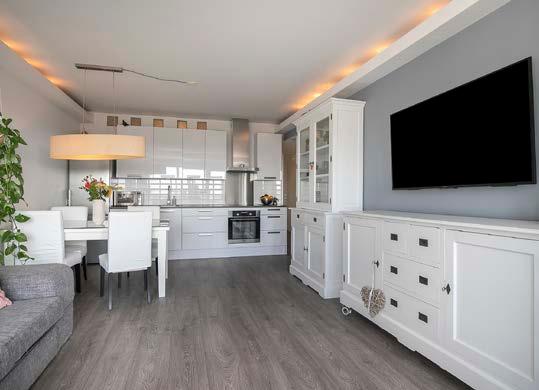 Bij binnenkomst in de woning valt direct op hoe strak en modern alles is afgewerkt. De laminaatvloeren en glad gestucte wanden geven de woning een frisse en moderne uitstraling.