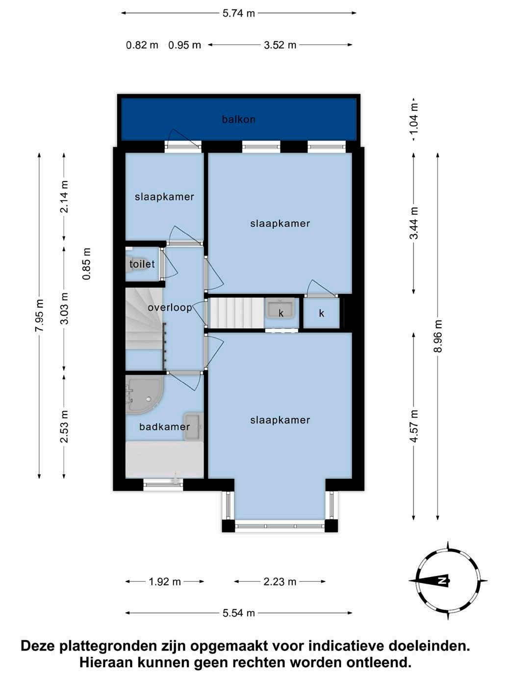 Overloop met apart toilet en drie in grootte variërende slaapkamers en een badkamer. De grootste van de drie slaapkamers heeft een leuke erker en een eigen wastafel. De badkamer maakt de verdieping compleet en is voorzien van een wastafel, een douche en een ligbad.