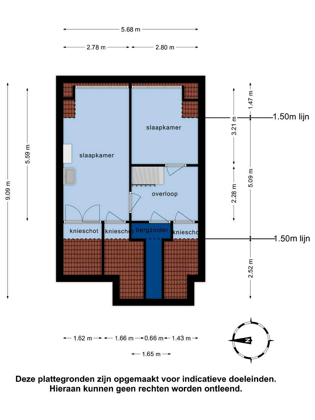 Ruime overloop met mogelijkheid voor extra kastruimte. Via de overloop is ook de bergzolder toegankelijk. Twee in grootte variërende slaapkamers. Beide voorzien van een dakkapel waar veel licht door naar binnenkomt. De grootste van de twee slaapkamers heeft een eigen wastafel. Op de tweede verdieping zijn op verschillende plekken knieschotten aanwezig waardoor er veel extra opbergruimte aanwezig is.