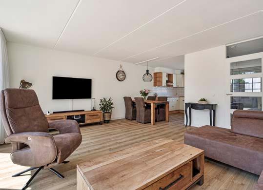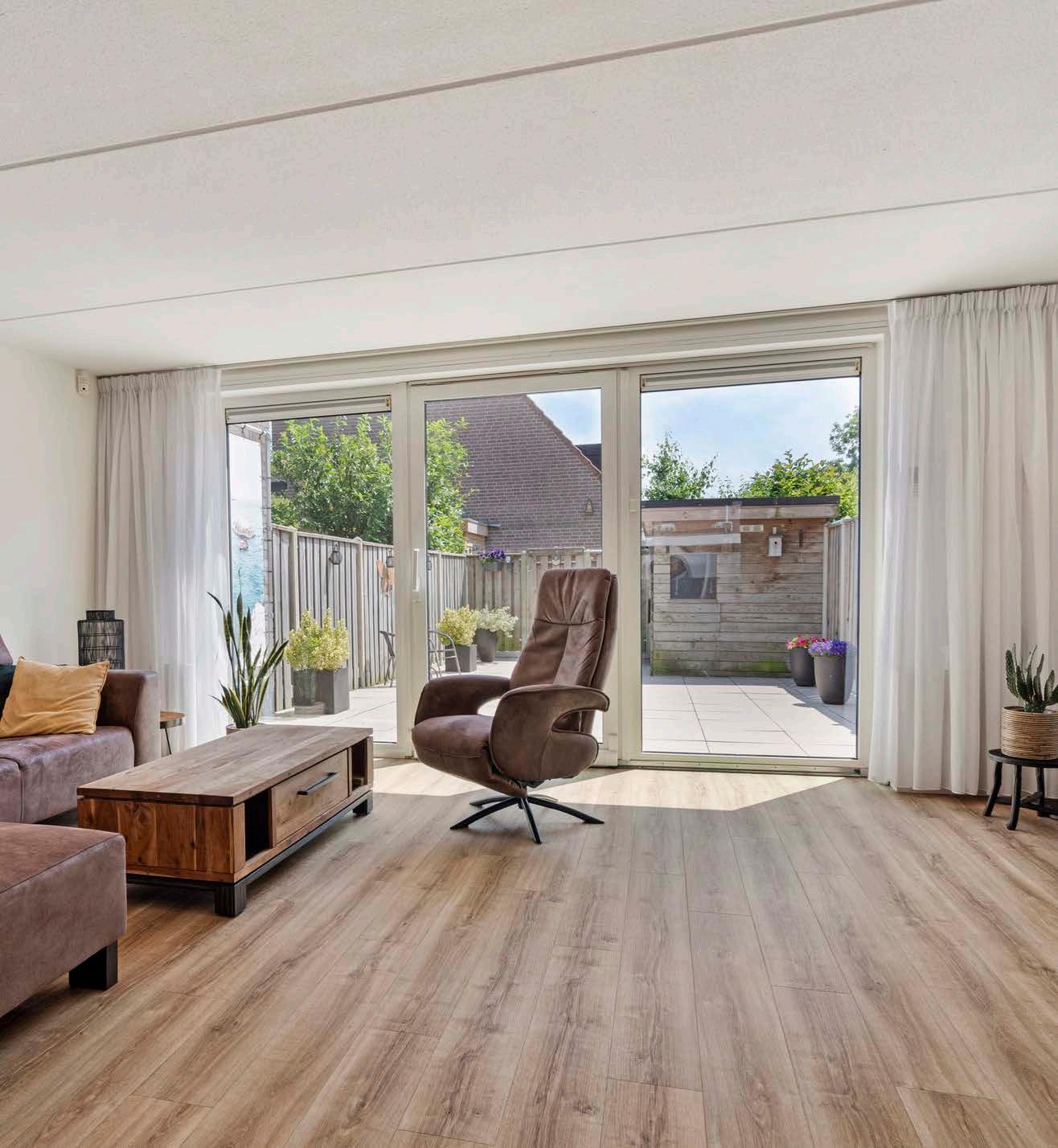 De woonkamer, tuingericht en voorzien van een schuifpui, is de perfecte plek voor uw gezin om samen te komen. Het natuurlijke zonlicht stroomt naar binnen en verlicht de ruimte, terwijl de schuifpui een naadloze overgang biedt naar de zonnige achtertuin.