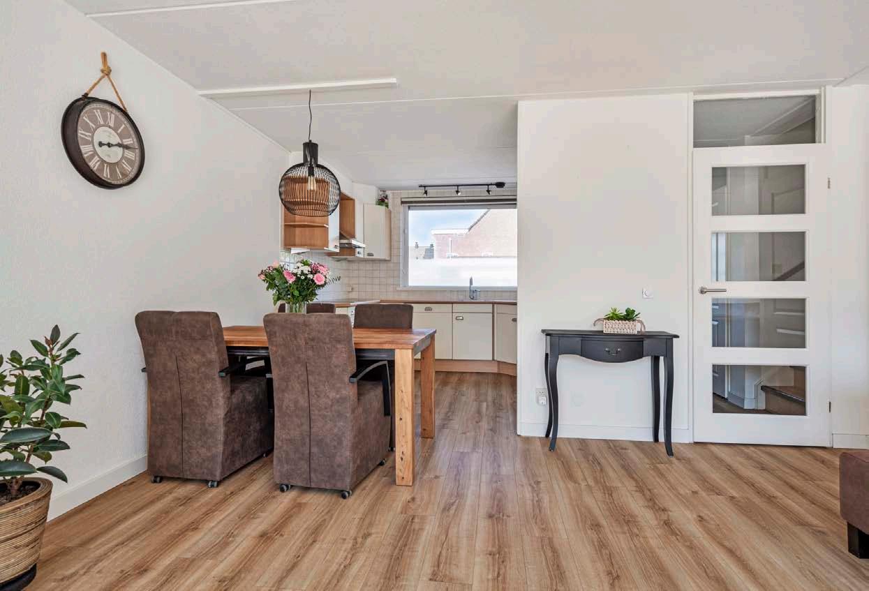 De hal is strak en praktisch, en biedt voldoende ruimte om jassen en schoenen van uw gezin op te bergen. Vanuit de hal betreedt u de lichte, straatgerichte keuken, waar moderne inbouwapparatuur staat te glanzen, klaar om uw culinaire creaties te ondersteunen.