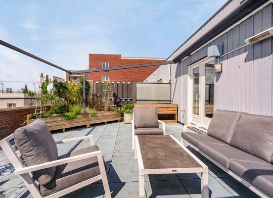 Een van de absolute hoogtepunten van deze maisonnette is het zonnige dakterras op het zuiden. Vanuit de slaapkamer bereikt u via openslaande deuren dit heerlijke terras. Hier kunt u genieten van een fantastisch uitzicht terwijl u ontspant in de zon. Stel u voor: een kopje koffie in de ochtendzon, een boek lezen in de middag of een gezellige barbecue met vrienden en familie in de avond. Dit dakterras biedt u en uw gezin de perfecte plek om van het buitenleven te genieten, zonder ooit uw huis te hoeven verlaten.