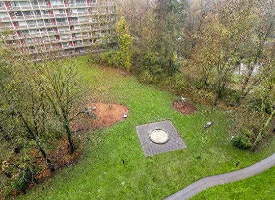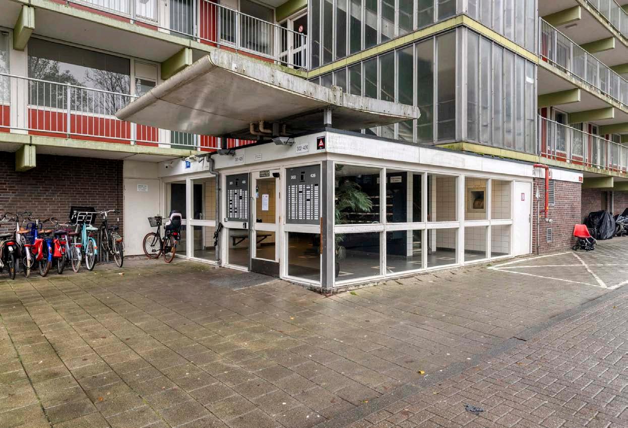 Stap binnen via een royale centrale ontvangsthal met intercominstallatie, brievenbussen en toegang tot de dubbele lift. Op de 8e verdieping treft u een lichte hal met meterkast en garderobe, die leidt naar de ruime woonkamer.
