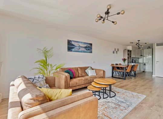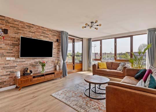 De woonkamer is licht en biedt toegang tot het zuidelijk gelegen balkon, waar je kunt genieten van de middag- en avondzon.