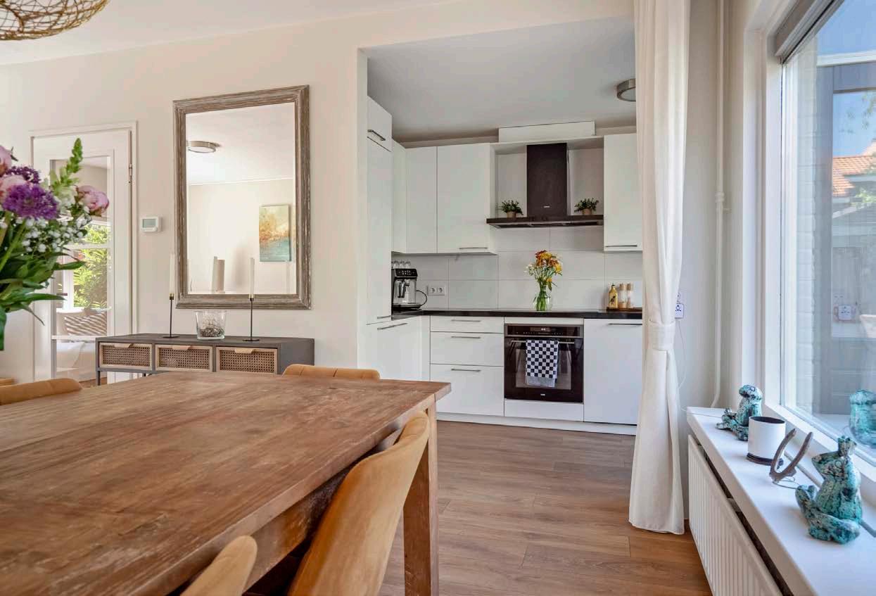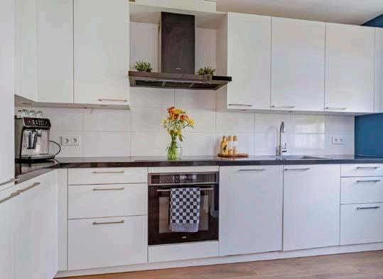 Kookliefhebbers opgelet: de open keuken stelt je in staat om heerlijke maaltijden te bereiden terwijl je in contact blijft met familie of gasten. Geplaatst in 2014, beschikt deze keuken over witte fronten, een donker werkblad en is het uitgerust met kwalitatieve inbouwapparatuur, zoals een koel-/vriescombinatie, vaatwasser, inductie kookplaat (2022), afzuigkap en een oven (beide uit 2022).