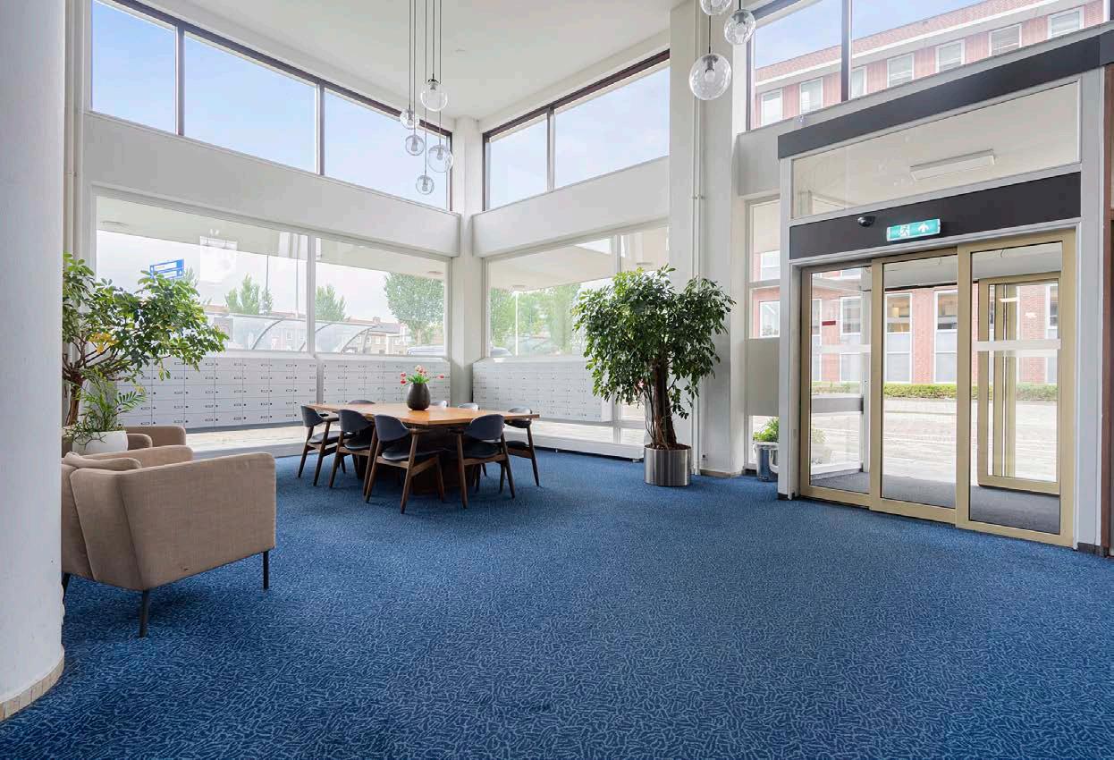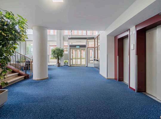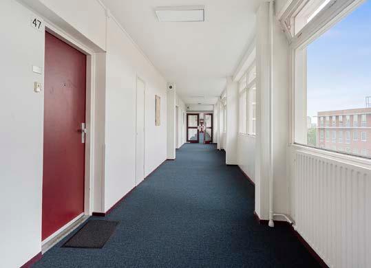 Je komt binnen in een gemeenschappelijke hal die groot, licht en ruim is.