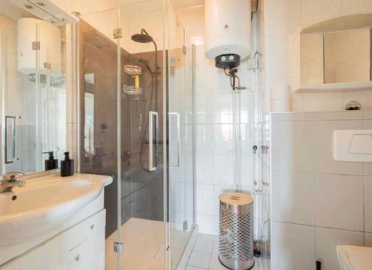 De keuken is voorzien van alle benodigde apparatuur en biedt voldoende kastruimte. Hier kun je met gemak een heerlijke maaltijd bereiden. De badkamer is netjes en functioneel, met een douche, wastafel en voldoende opbergruimte.