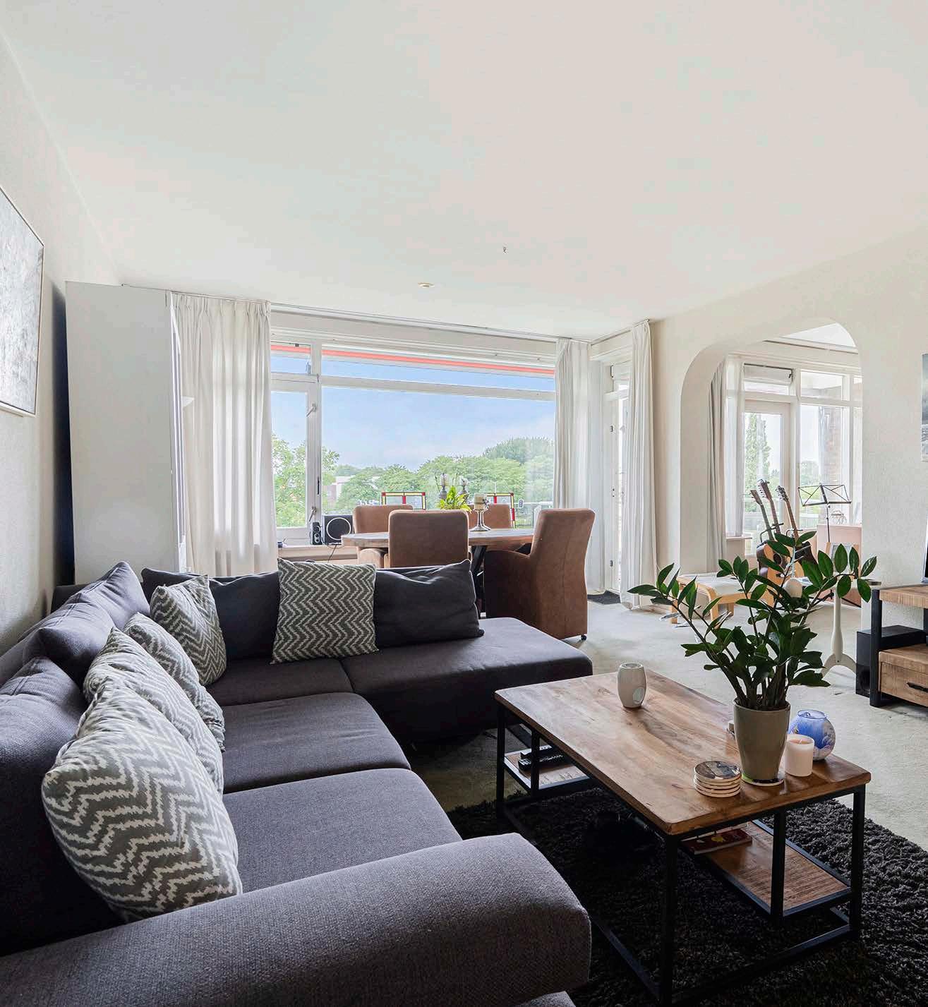 Stap binnen in dit lichte en ruime appartement en ervaar de warme sfeer en het comfort dat deze woning biedt. De grote raampartijen laten het zonlicht binnenstromen en bieden een panoramisch uitzicht over de groene omgeving. De woonkamer biedt genoeg plek voor een gezellige zithoek en een eethoek