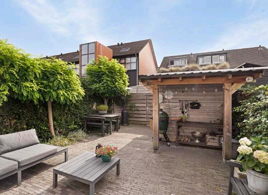 Niet te missen is de zonnige achtertuin, gelegen op het zuidoosten. Hier kun je vanaf de vroege ochtend tot in de late namiddag genieten van de zon. De tuin is onderhoudsvriendelijk aangelegd met een mix van groen en terrassen. Een schuur biedt extra opbergruimte voor fietsen en tuingereedschap.