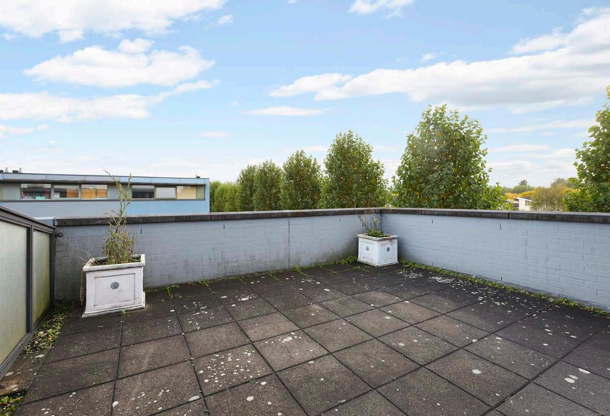 Via een vaste trap kom je in de vierde slaapkamer, die eventueel nog gesplitst zou kunnen worden zodat er nog een extra (slaap)kamer ontstaat. Vanuit deze kamer heb je toegang tot een berging met daarin de aansluitingen voor het witgoed en de cv opstelling en het riante dakterras.