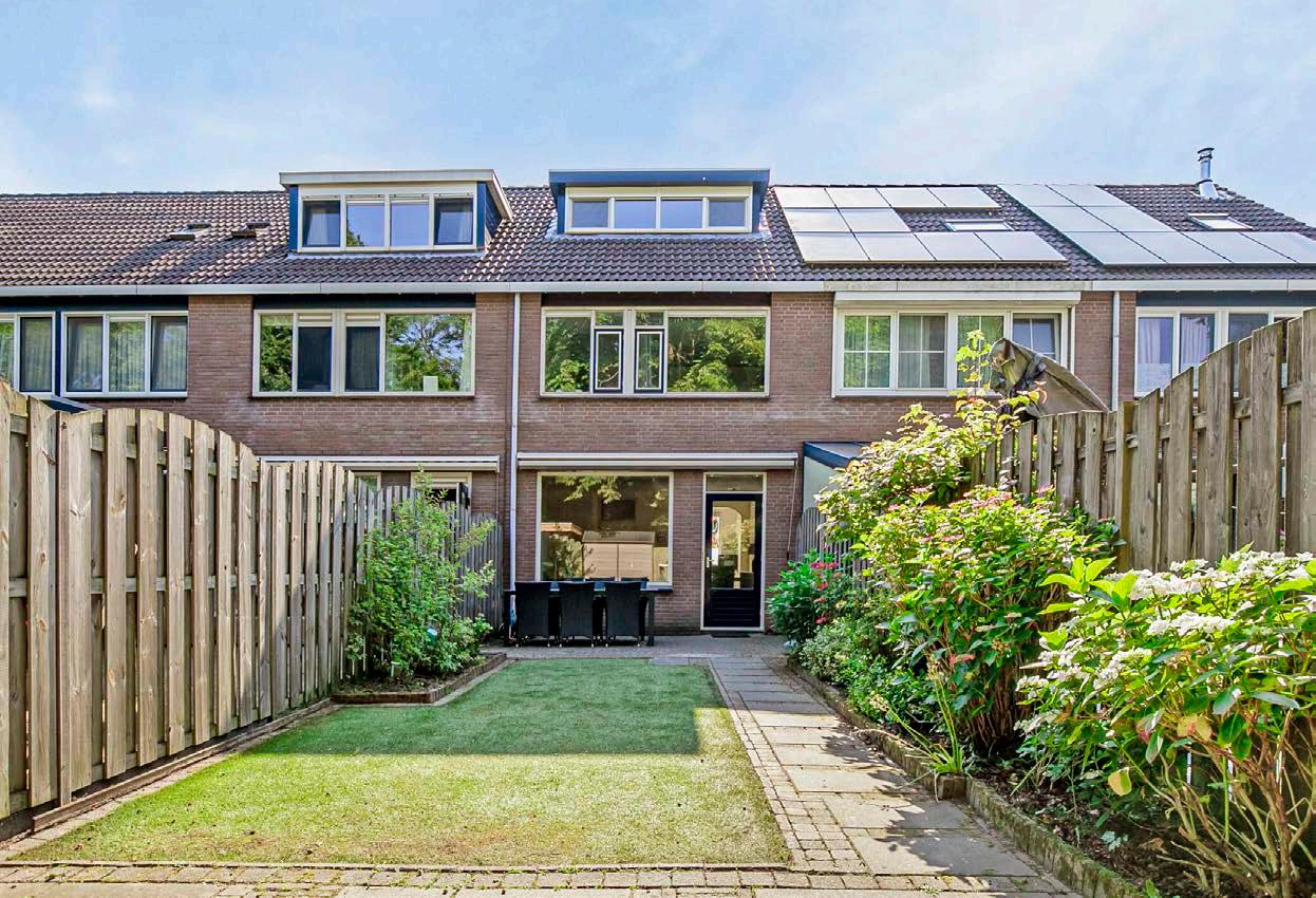 De diepe achtertuin van deze woning is gelegen op het westen en grenst aan park de Groene Wiecken. Dit betekent dat je kunt genieten van een groene, serene omgeving met veel privacy en de zon in de namiddag en avond. Perfect voor ontspanning na een lange dag.