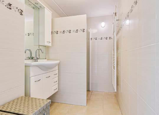 De badkamer in deze woning is volledig betegeld en heeft een moderne uitstraling. Voorzien van een inloopdouche, een wastafelmeubel en een designradiator, biedt deze badkamer zowel comfort als stijl. Hier begin je je dag fris en opgewekt.