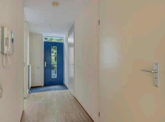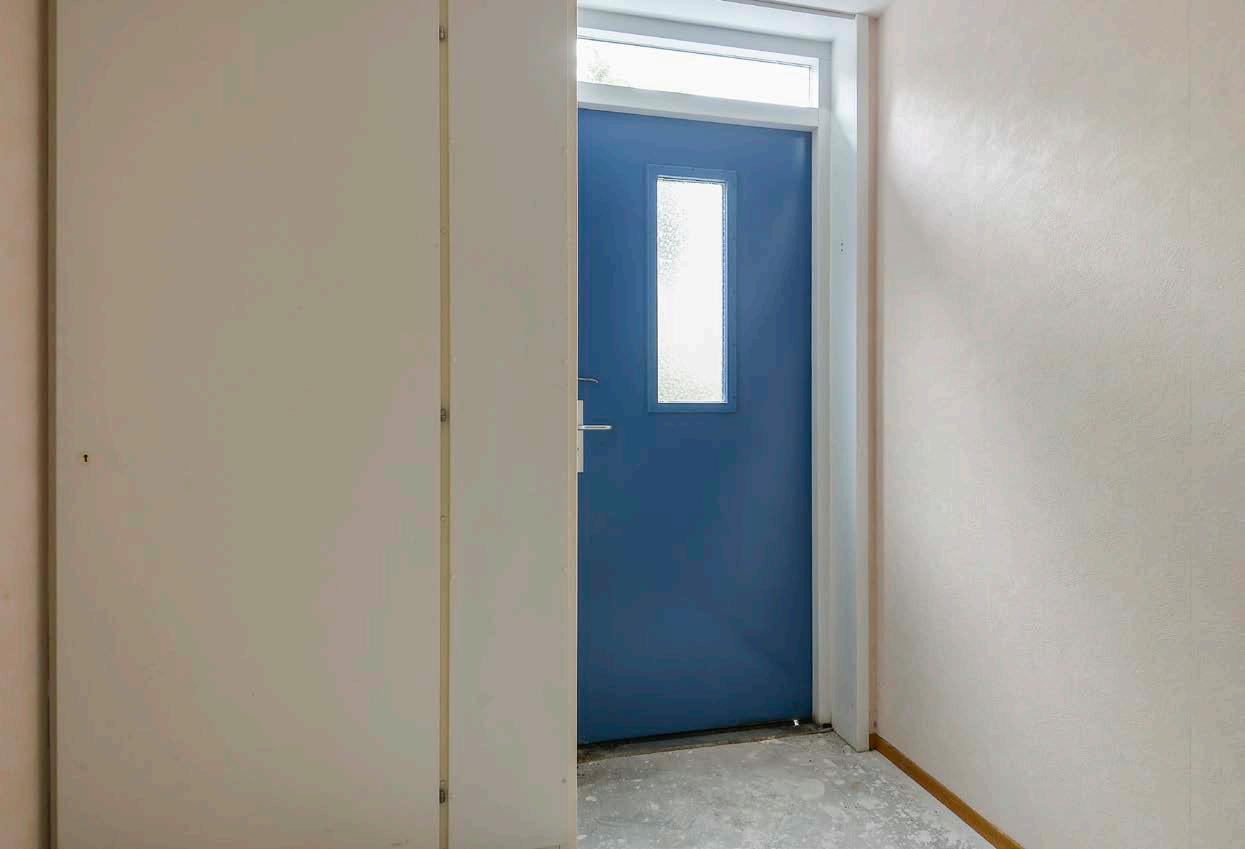 De entree met videofooninstallatie en kast met meterkast en mechanische ventilatie leidt je naar de hal welke toegang verleent tot elk vertrek van de woning.