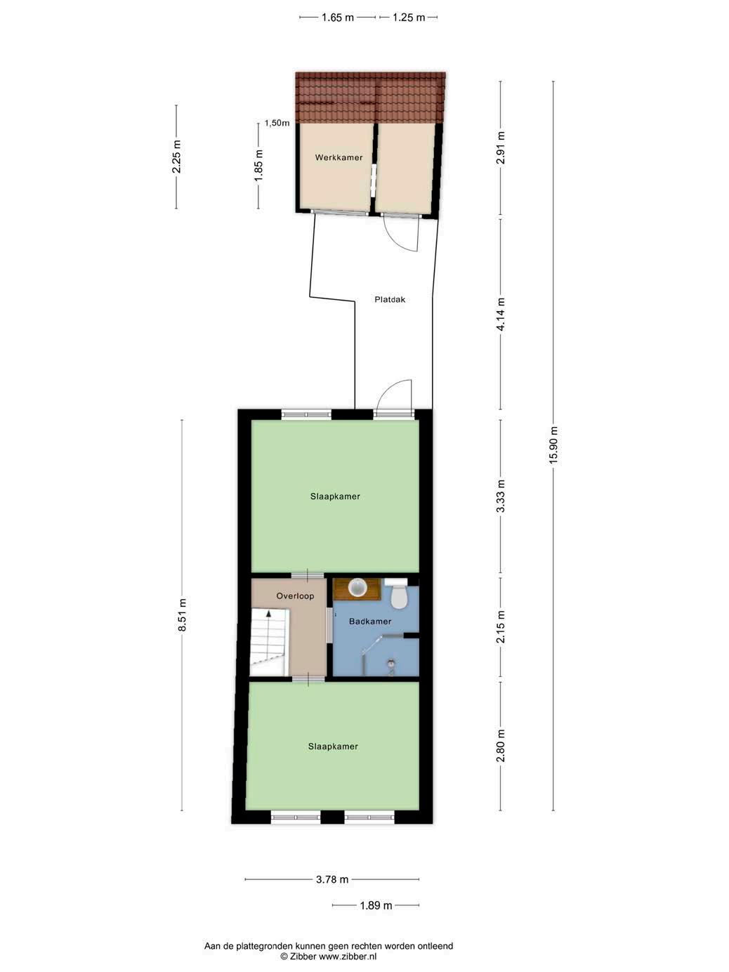De slaapkamer aan de achterzijde is vergelijkbaar in formaat en eveneens prettig ingedeeld.