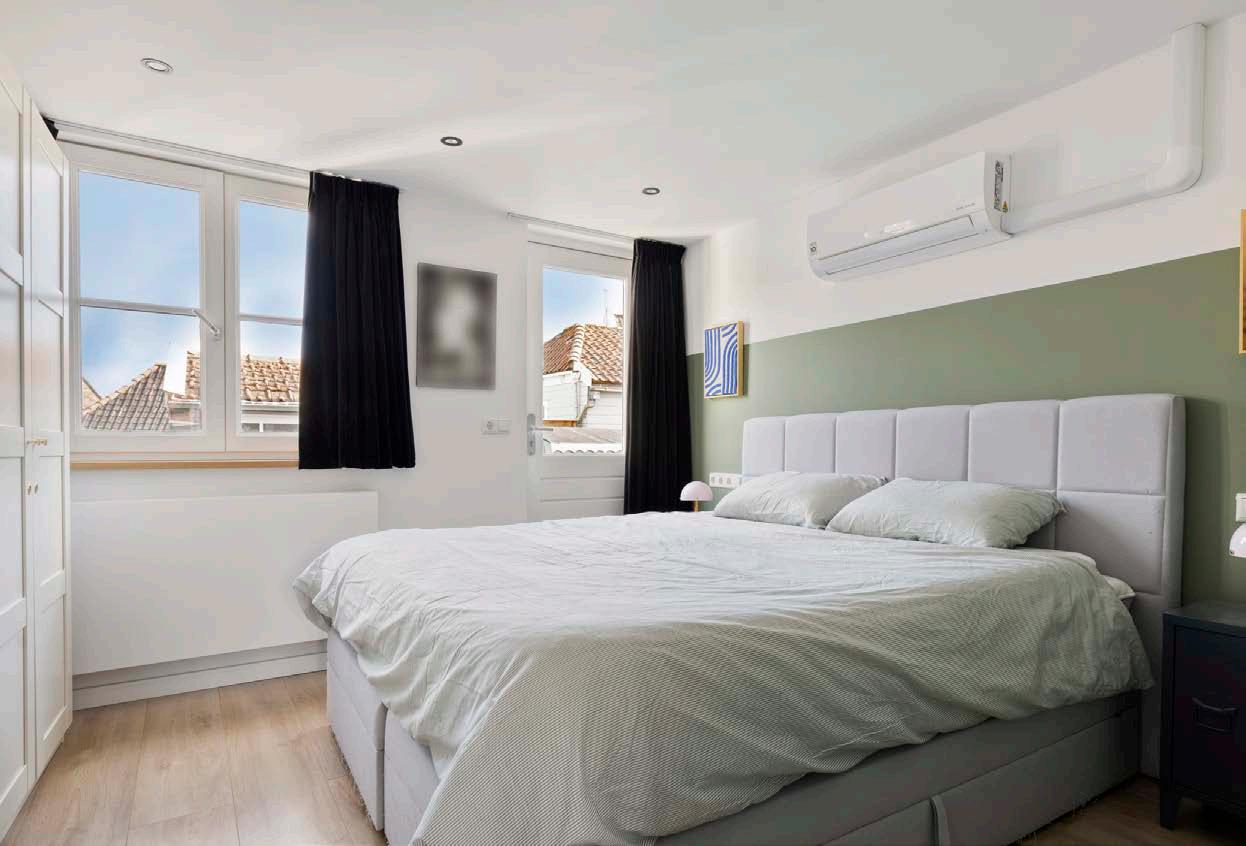 De slaapkamer aan de voorzijde is voorzien van een dakkapel, wat zorgt voor extra ruimte en lichtinval. Daarnaast heeft deze kamer een prachtig uitzicht op de Grote Kerk.