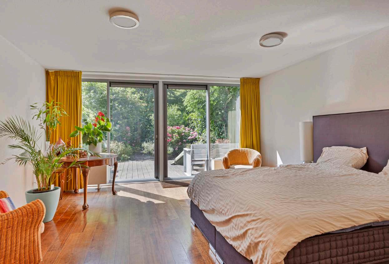 De begane grond beschikt momenteel over twee riante slaapkamers. De slaapkamer aan de voorzijde grenst aan een ruime walk-in closet met o.a. op maat gemaakte inbouwkasten. De masterbedroom aan de achterzijde heeft een grote schuifpui met toegang tot de zonnige achtertuin.