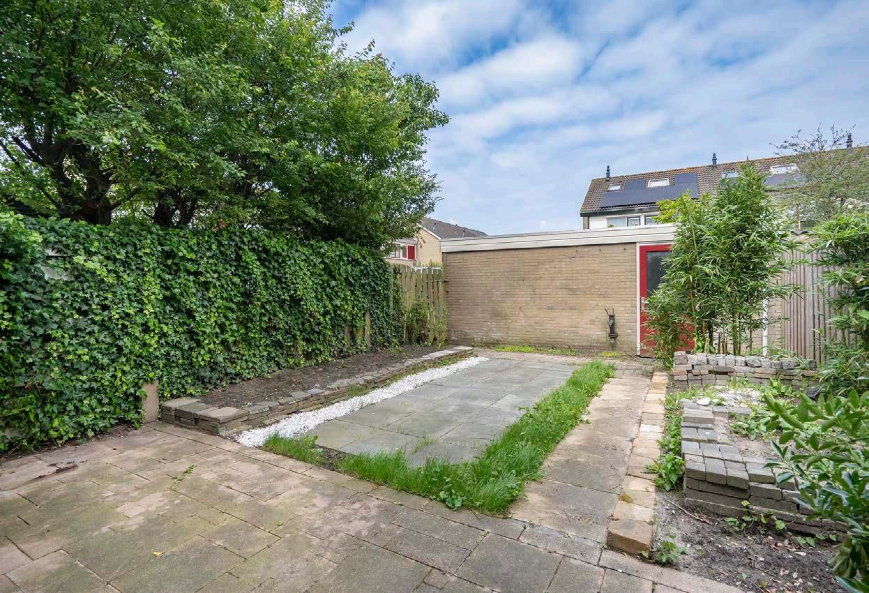 Geniet van lange zomeravonden in de achtertuin, die op het noordwesten ligt. De tuin heeft een achterom voor gemakkelijke toegang en biedt toegang tot de garage, die voorzien is van elektra en een handmatig te bedienen garagedeur. Dit maakt de tuin zowel leuk als praktisch.