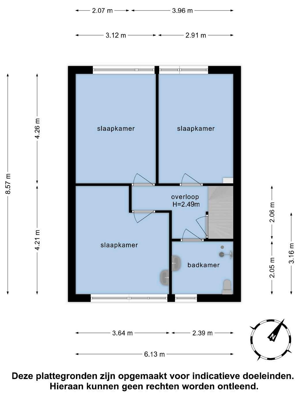 De overloop leidt naar drie comfortabele slaapkamers, elk met voldoende ruimte voor een bed en opbergruimte. De badkamer is functioneel en biedt een douche, wastafel en toilet, ideaal voor het hele gezin.
