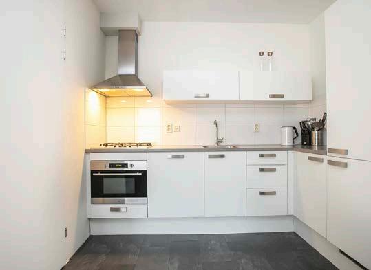 De open keuken heeft een nette uitstraling en is geplaatst in een praktische L-opstelling waardoor je over voldoende werk- en opbergruimte beschikt.